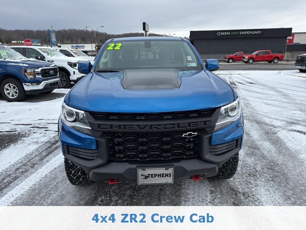 Preferred Equipment Group 4ZR: Driver-Selectable Full-Locking Front Differential; 265/65R17 AT BW Spare Tire; Hitch Guidance; Driver-Selectable Full-Locking Rear Differential; Off-Road Rocker Protection; 3.42 Rear Axle Ratio; Black Spray-On Bedliner with Chevrolet Logo; Transfer Case Shield; 17 X 8 Aluminum Spare Wheel; Integrated Trailer Brake Controller; Black Rear Bumpers; 17 X 8 Graphite and Oxide Gold Aluminum Wheels; Tow/haul Mode; 2-Speed AutoTrac Electric Transfer Case; Heavy-Duty Trailering Package; 265/65R17 AT BW Tires; ZR2 Off-Road Package; 3.6L DI DOHC V6 VVT Engine. Chevrolet Infotainment 3 Plus System Radio with Navigation. Bright Blue Metallic. Wireless Charging For Compatible Cell Phones. **Equipment listed is based on original vehicle build and subject to change. Please confirm the accuracy of the included equipment by calling the dealer prior to purchase.**