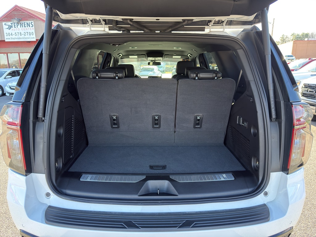 Max Trailering Package: 2-Speed Active Electronic Autotrac Transfer Case; Extra Capacity Cooling System. Advanced Trailering Package: Smart Trailer Integration Indicator; Integrated Trailer Brake Controller; Hitch View with Pan/zoom Image Adjustment. Driver Alert Package: Rear Cross Traffic Alert; Lane Change Alert with Side Blind Zone Alert. Luxury Package: HD Surround Vision; Heated 2nd Row Outboard Seats; 2nd Row Power Release 60/40 Split-Folding Bench Seat; Memory Settings; Power Tilt and Telescopic Steering Column; Rear Pedestrian Alert; Heated Steering Wheel; 3rd Row 60/40 Power-Folding Split-Bench Seat; Enhanced Automatic Emergency Braking; Adaptive Cruise Control; Outside Heated Power-Adjustable Mirrors. Preferred Equipment Group 1SP: Bright Front and Rear Door Sill Plates; Hands-Free Rear Power Programmable Liftgate; Chevrolet Infotainment 3 Premium System Radio; Bose 9-Speaker Stereo Audio System Feature; Perforated Leather Seat Trim; 1st and 2nd Row Color-Keyed Carpeted Floor Mats; Remote Start; Enhanced Driver Information Center; Floor Console with Storage Area; SiriusXM with 360L; Wrapped Steering Wheel; 22 X 9 Bright Machined Wheels; LED Daytime Running Lamps; Driver and Front Outboard Passenger Airbags; Auto-Dimming Inside Rearview Mirror; Memory Settings For Driver; Wireless Charging; Front High-Back Reclining Bucket Seats; 275/50R22SL AS BW Tires; Universal Home Remote; Color-Keyed Carpeting Floor Covering. Power Release 2nd Row Bucket Seats. 1st. 2nd & 3rd Rows All-Weather Floor Liners (LPO). **Equipment listed is based on original vehicle build and subject to change. Please confirm the accuracy of the included equipment by calling the dealer prior to purchase.**