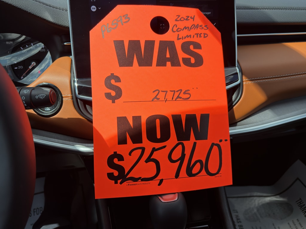 Discover confidence and style with this 2024 Jeep Compass Limited, now available in Danville, WV. With just 26,366 miles, this Jeep Compass offers low mileage and modern features for drivers who demand comfort, capability, and connection. Powered by a fuel-efficient 2.0L 4-cylinder engine and equipped with 4WD, it's ready for weekend adventures, winter commutes, and everything in between. Step inside to premium leather seats and a heated steering wheel that put comfort first on every drive. Automatic climate control keeps the cabin at the perfect temperature, while hands-free Bluetooth and seamless connectivity let you stay focused and in touch. Remote start adds convenience-warm up or cool down the vehicle before you get in, whatever the season. The Limited trim brings thoughtful upgrades, refined interior appointments, and advanced convenience features that elevate daily driving. Whether navigating city streets or exploring backroads, the Jeep Compass balances nimble handling with Jeep's rugged capability. Safety and tech features help keep you confident behind the wheel, and the low mileage means plenty of dependable miles ahead. Located in Danville, WV, this 2024 Jeep Compass Limited is an excellent choice for buyers seeking a well-equipped, low-mileage compact SUV with 4WD and modern comforts. Schedule a test drive today to experience the blend of style, capability, and convenience this Jeep Compass delivers.