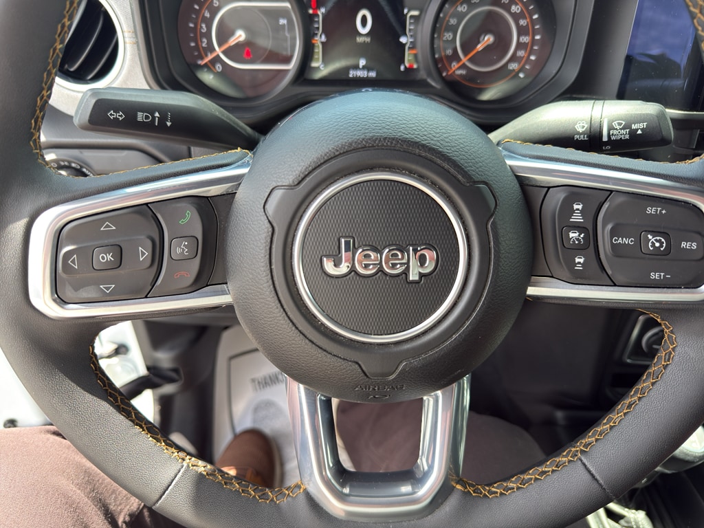 It's Forward Collision Warning system alerts the driver to potential front-end collisions, enhancing safety. This 2025 Jeep Wrangler offers Apple CarPlay for seamless connectivity. Protect the Jeep Wrangler from unwanted accidents with a cutting edge backup camera system. It comes equipped with Android Auto for seamless smartphone integration on the road. An off-road package is installed on this Jeep Wrangler so you are ready for your four-wheeling best. Bluetooth technology is built into this Jeep Wrangler, keeping your hands on the steering wheel and your focus on the road. The Jeep Wrangler keeps you comfortable with Auto Climate. The installed navigation system will keep you on the right path. Start the Jeep Wrangler from inside with remote start. The vehicle is equipped with the latest generation of XM/Sirius Radio. This Jeep Wrangler has auto-adjust speed for safe following. Keep your hands warm all winter with a heated steering wheel in this model .