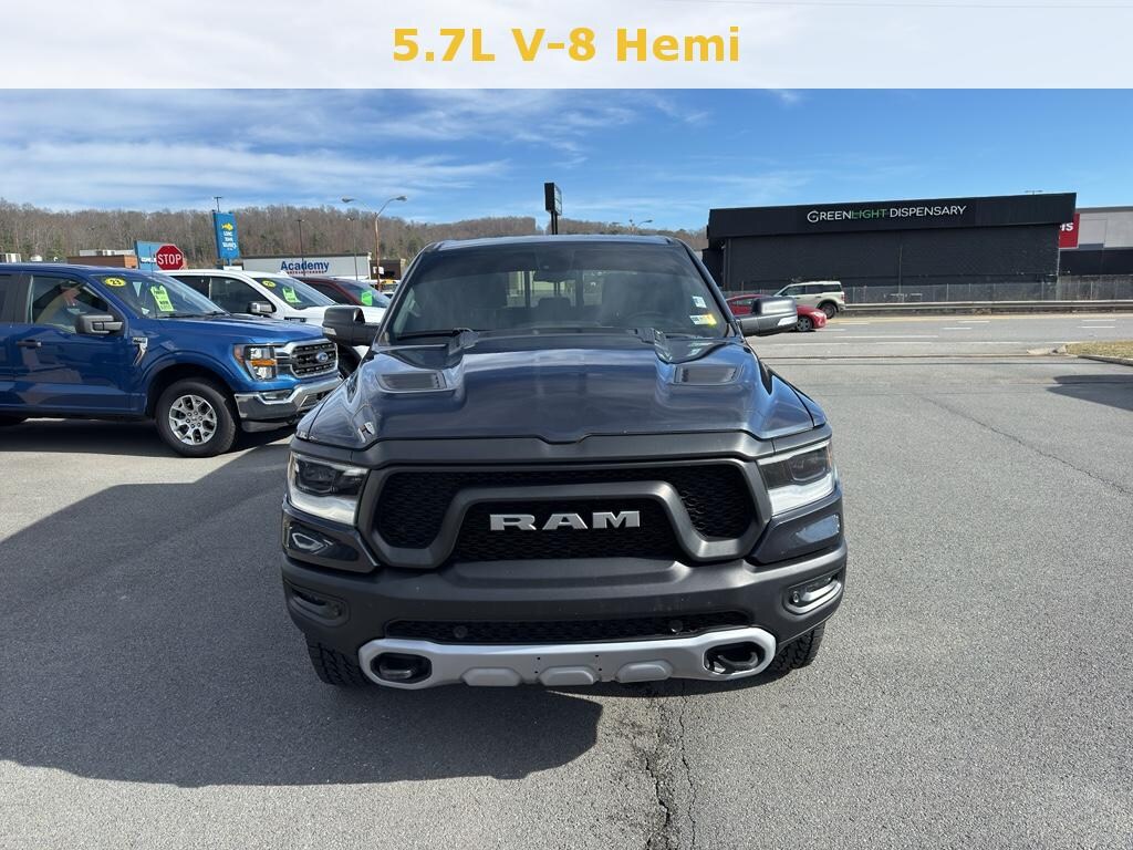 2019 Ram 1500 Rebel 4WD â" powerful V8 performance and rugged style in Danville, WV. Clean 5.7L HEMI V8 delivers commanding horsepower and towing capability while the 4WD system keeps you confident on rough roads and in adverse weather. This Rebel blends off-road-ready suspension, aggressive styling, and modern comfort features for a true full-size pickup experience. Key features: Hands-Free Bluetooth for safe calling and media, Android Auto integration for efficient navigation and smartphone access, Remote Start for quick warm-up on cold mornings, Automatic Climate Control to keep the cabin comfortable, and Rear Parking Sensors for easier maneuvers in tight spots. Leather-trimmed seating and intuitive controls make daily driving and long trips equally enjoyable. Located in Danville, WV, this 2019 Ram 1500 Rebel is priced to move â" offering the best price in the area for comparable Rebels. Well-maintained and inspected, it provides immediate value for buyers seeking capability, comfort, and technology without paying new vehicle premiums. Financing options available and trade-ins welcome. Schedule a test drive today in Danville, WV and see why this Ram 1500 Rebel is the smart choice for drivers needing rugged performance, modern convenience, and unbeatable value. Contact us to get more details and secure this best-priced Ram 1500.